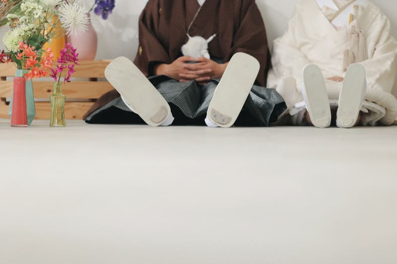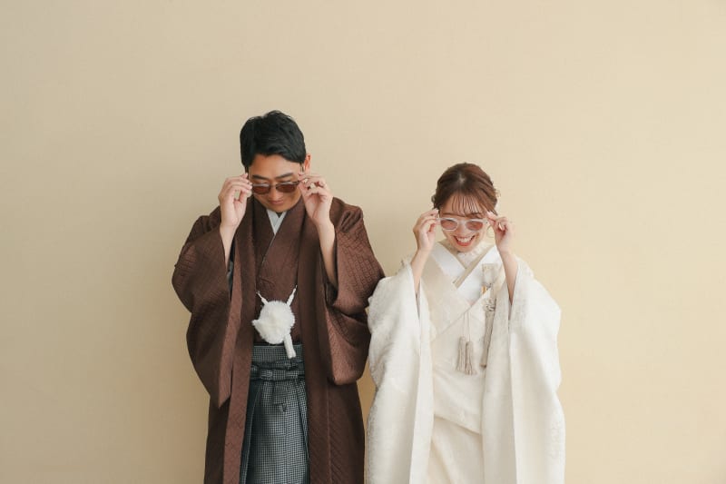 まずはベージュの背景から撮っていきました!柔らかい雰囲気が出せるこの背景は洋装でも、和装でも相性抜群です!