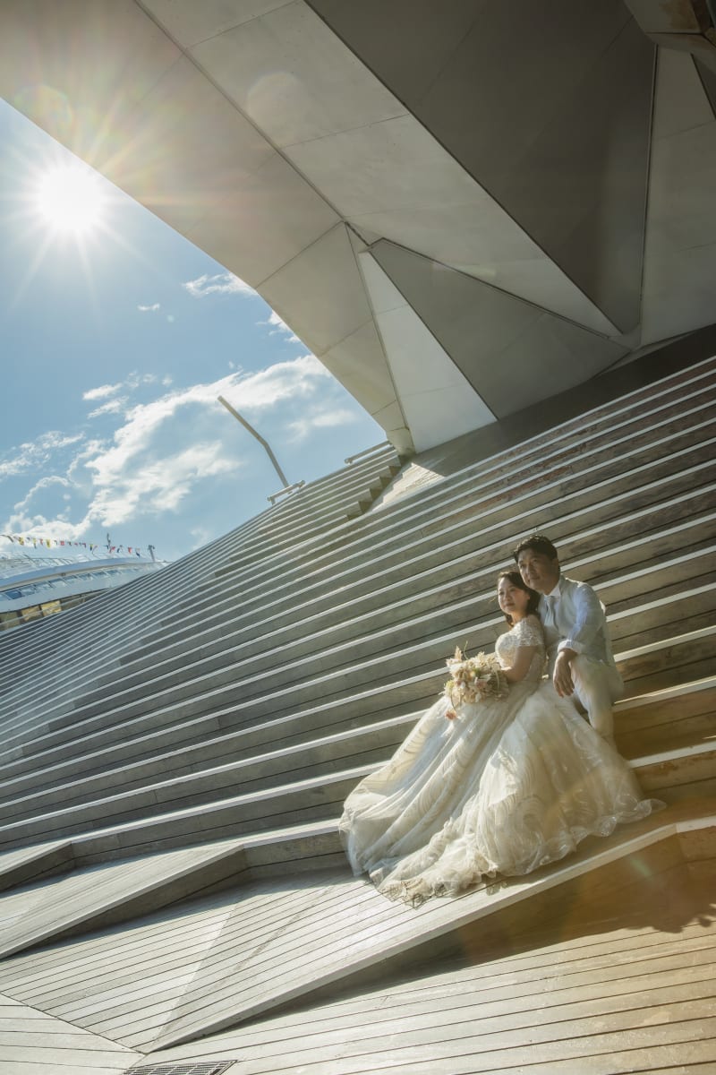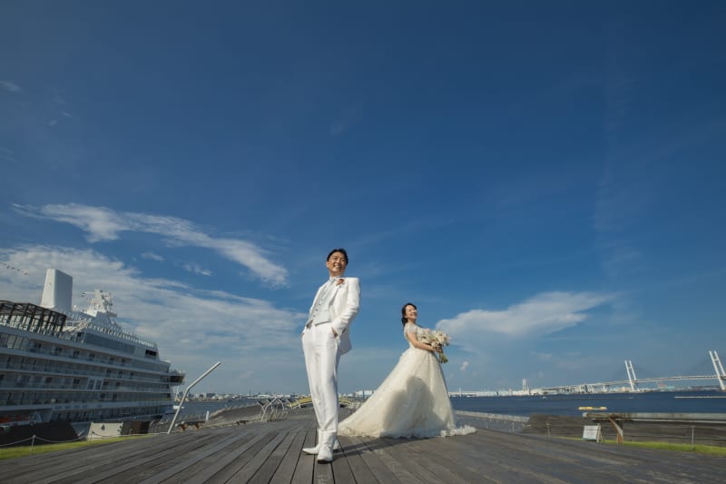 本日は日中大桟橋のご紹介です。笑顔がチャーミングなお二人でした。マタニティでしたが最後まで元気いっぱいの新婦様で、優しく気遣う新郎様が素敵でした。