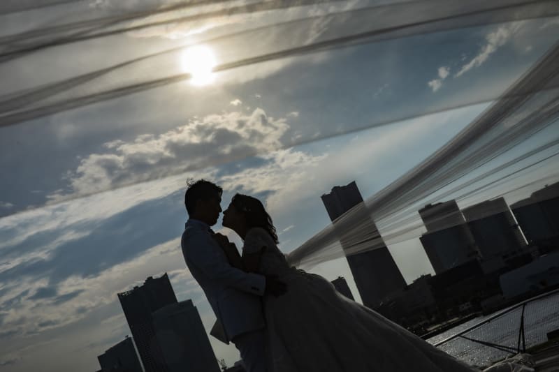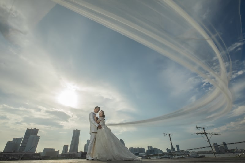 同じヴェールでのシルエットバージョン。晴れた日だからこそ撮れる素敵なショット!!