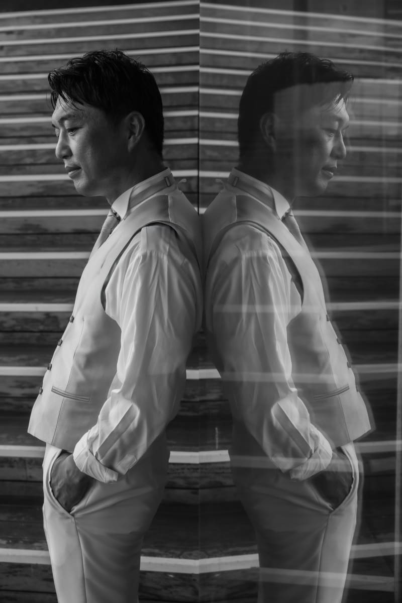 優しくて笑顔の柔らかい新郎様ですがあえてのクールショット。