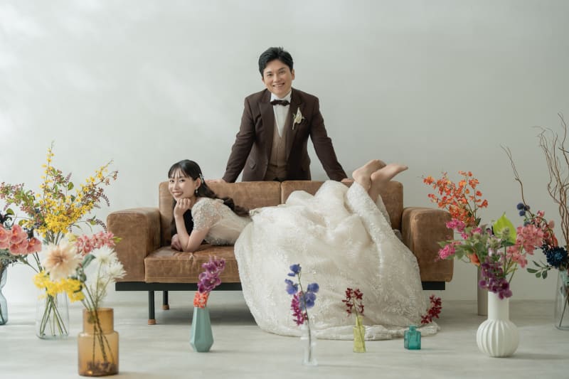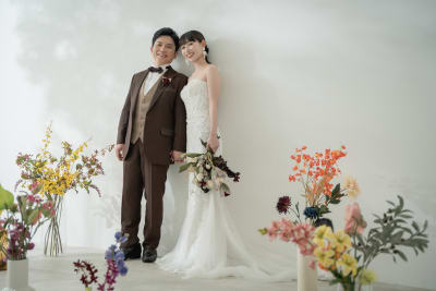 背景がスッキリしている分お二人やお花の色合いがより際立って見えます!
