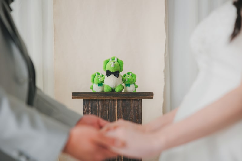 ぬいぐるみが牧師みたいにお二人を見守ってくださっています〜!