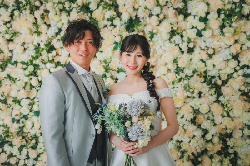 最初は花一面の背景で!華やかで素敵ですね!
