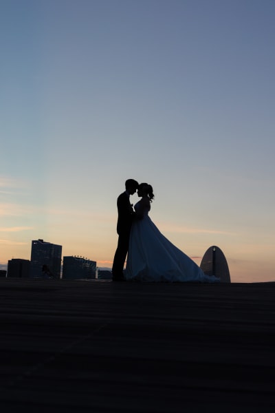 夕日を背景にしたシルエットショット。まるで映画のワンシーンのような仕上がりです!