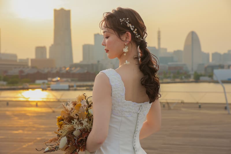 新婦様のソロショットです! 日が落ちてきて綺麗な光になってます!