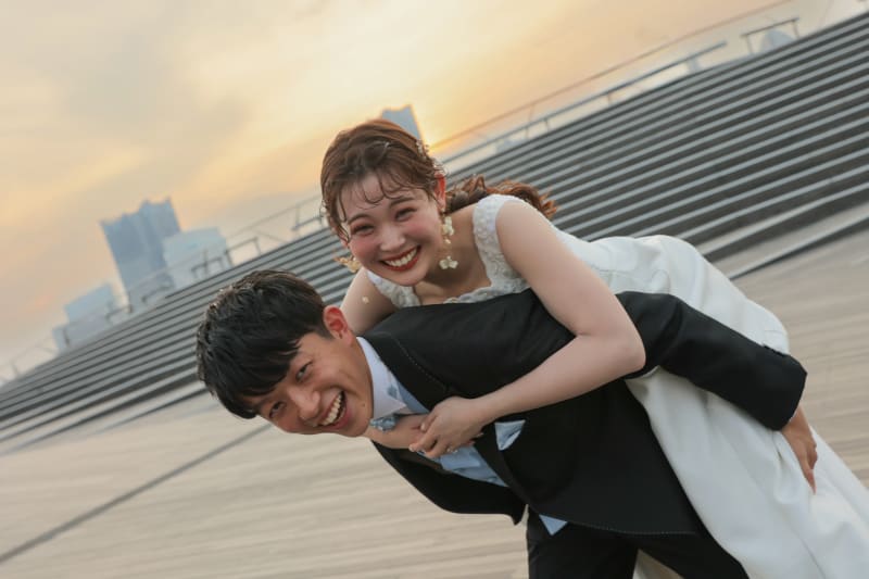 おんぶをしてふざけたショットも可愛いです! ニコニコなお二人に終始癒されました!