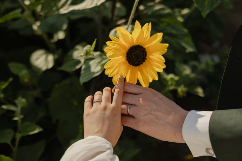 ひまわりも咲いていたのでそこでお二人の手元の写真を。