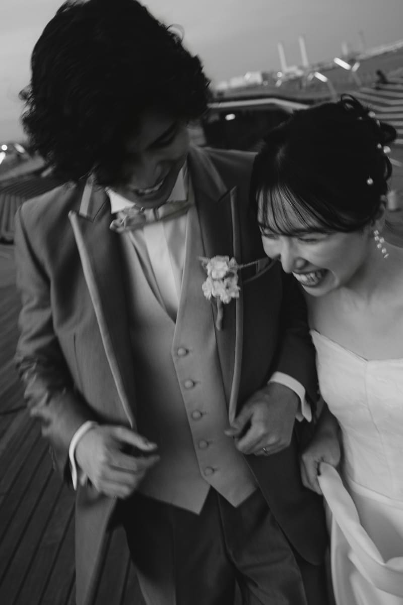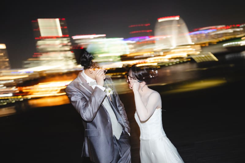 【横浜で記念日】汽笛が二人のスタートを祝う横浜のロケーションで美しい一枚を