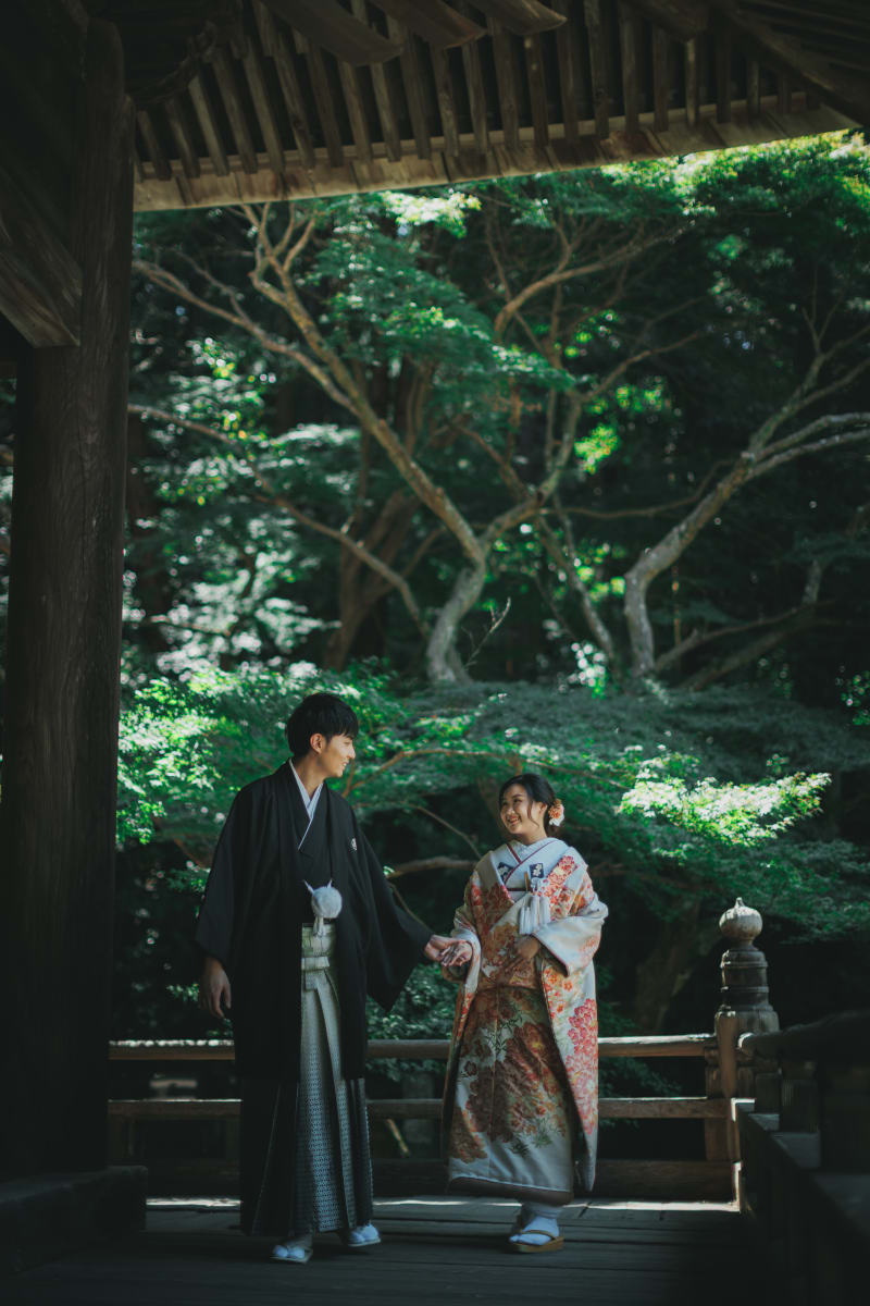 まずは和装で妙本寺から!大きくて厳かなお寺の雰囲気が和装ととっても相性がいいですね^^