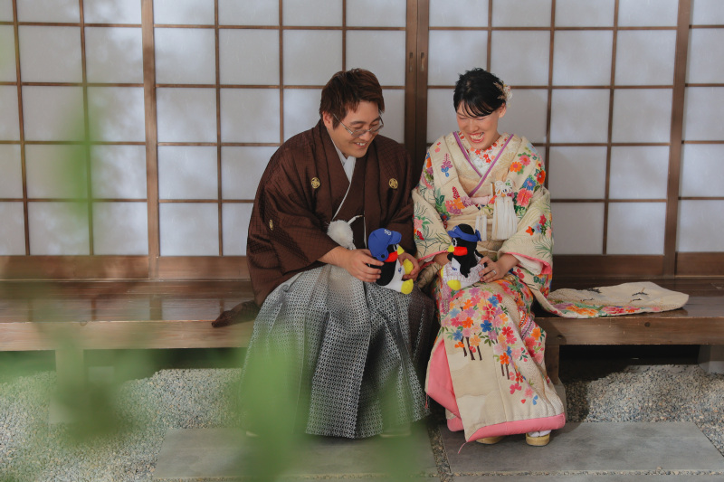 まずは屋内庭園スタジオからです。縁側のカットではお二人座ってつば九郎とわちゃわちゃしている様子を撮影しました。