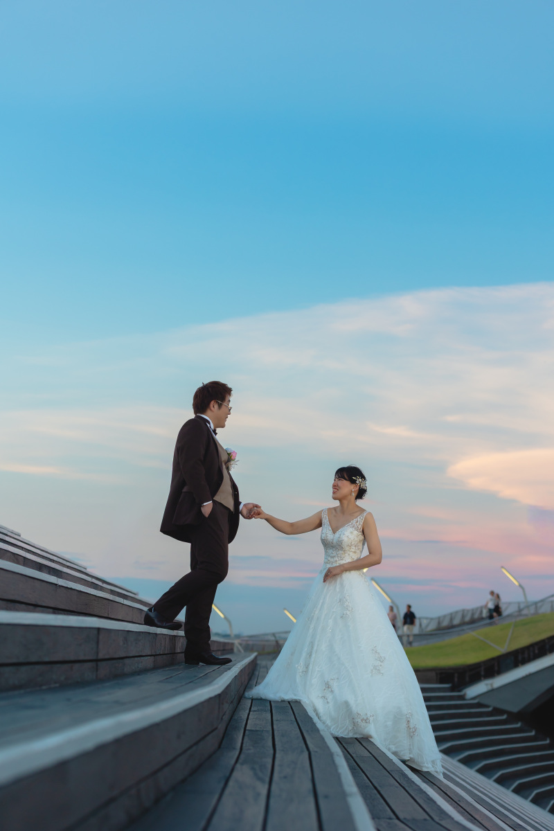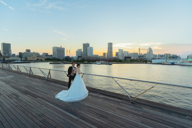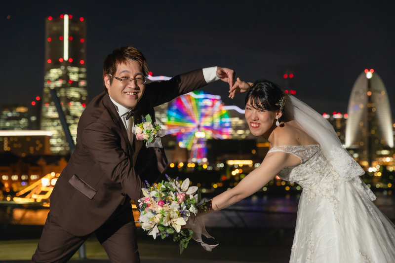 横浜名物みなとみらいの景色を一望!素敵な場所で撮るウェディングフォトはより特別感がありますね!