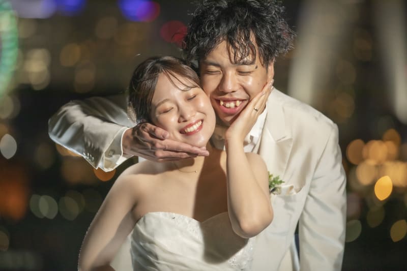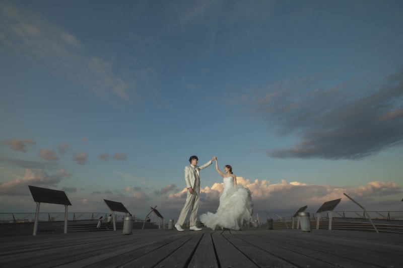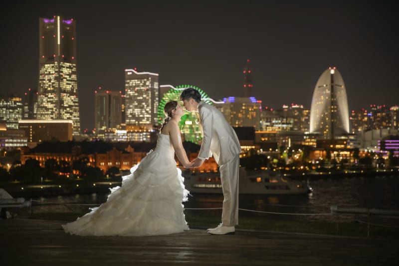 観覧車が虹色になってそこにお二人がはまってとても素敵です!