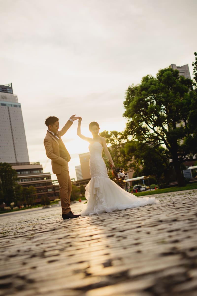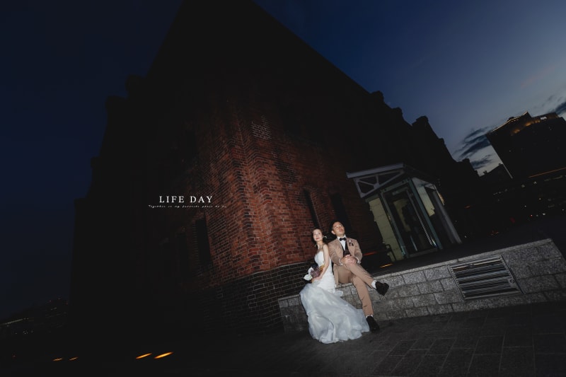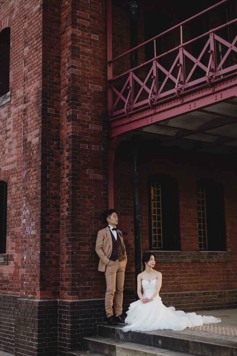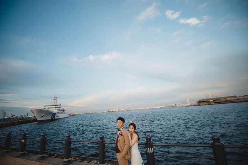 【横浜で記念日】汽笛が二人のスタートを祝う横浜のロケーションで美しい一枚を