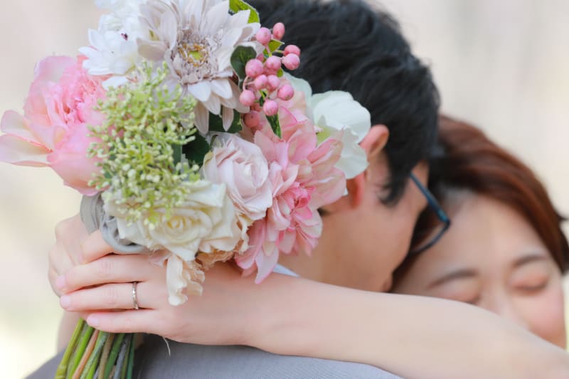 旦那さまに抱きつく奥様をお撮りした一枚!お二人の仲の良さが伺えますね〜