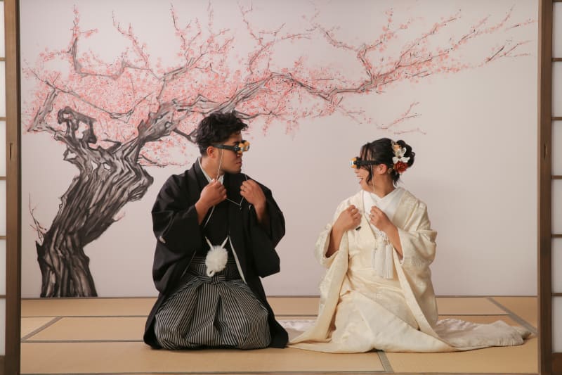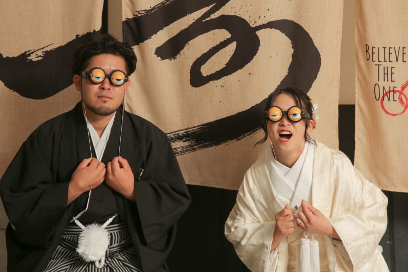 スタジオでお二人の思い出のアイテムを使ったお写真を!