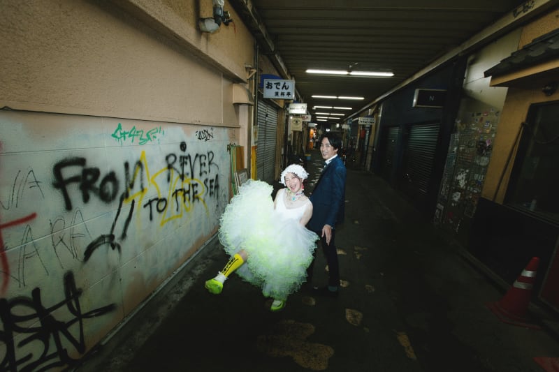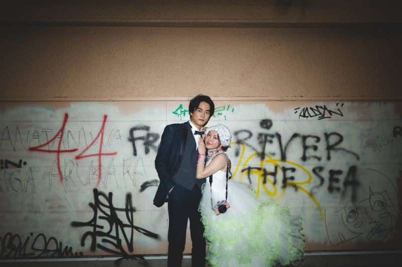 壁の落書きも周りの街並みも緑もお二人も全てがマッチしていておしゃかわでしたね^ ^