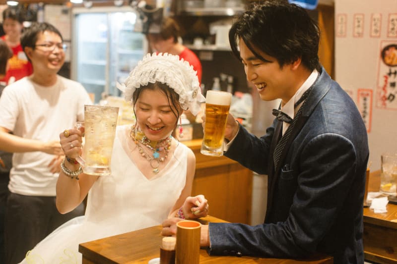 高架下通りの奥にある居酒屋の店員さん達がおめでと~!!飲んで行きなよ!!って感じだったので一杯だけ乾杯しちゃいました。本当に最高な1日でしたね。