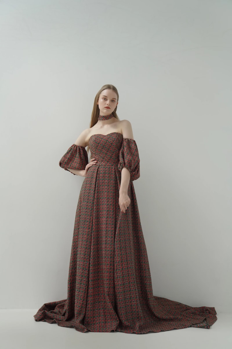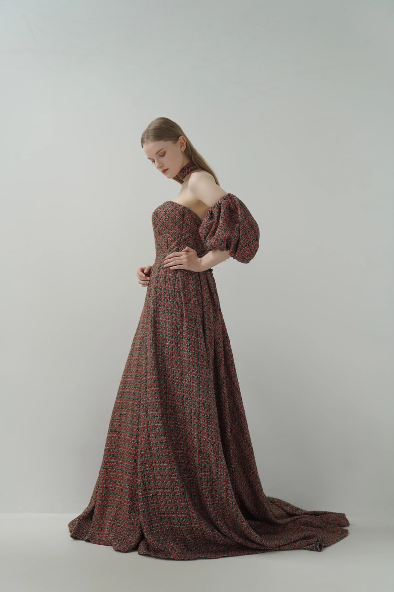 クラシカルなツイードを現代的に仕立てたラグジュアリードレス。
