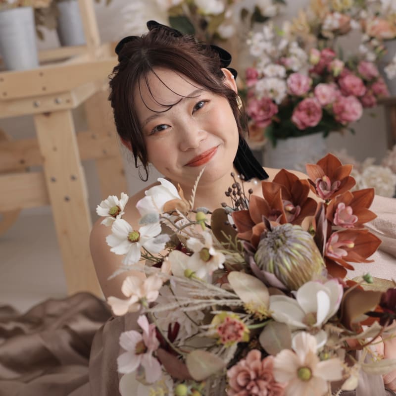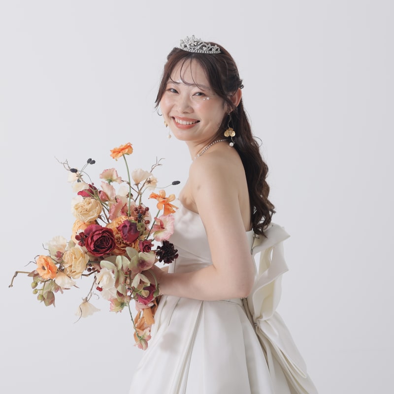 メイクの色味に合わせて選んだブーケもとっても可愛いですね!