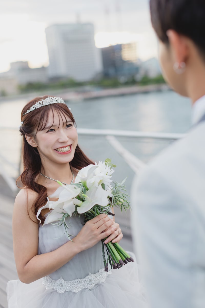 【横浜で記念日】汽笛が二人のスタートを祝う横浜のロケーションで美しい一枚を