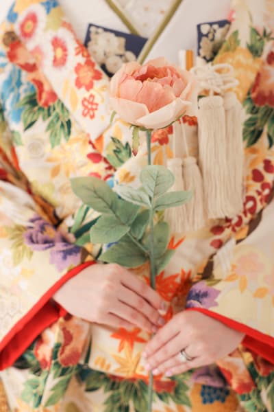 また、お花を一緒に持ったカットは、お着物の色味ともぴったり合っていて、とても素敵な雰囲気に仕上がりました!