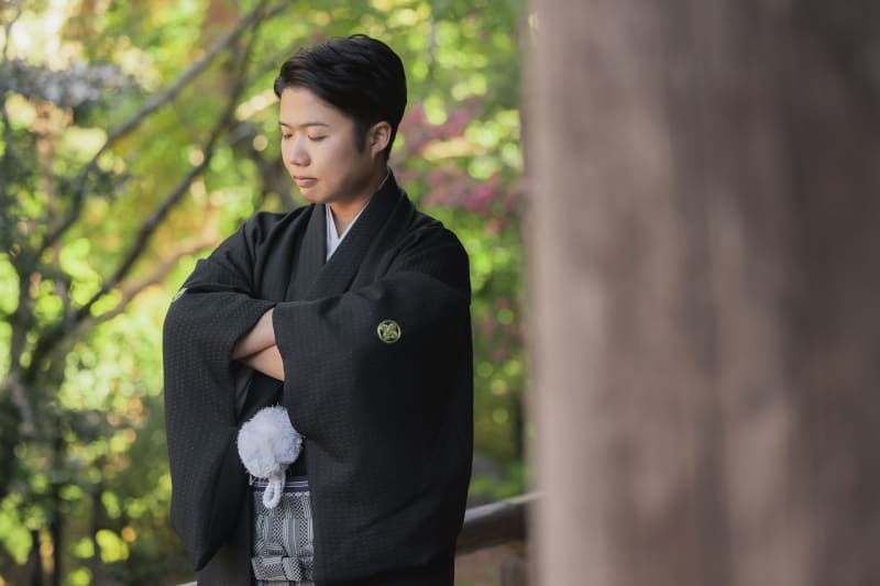 ソロカットもしっかり撮影していきます。黒の紋服はしっかりと締まった印象になり、ご新郎様にとってもお似合いでした^^