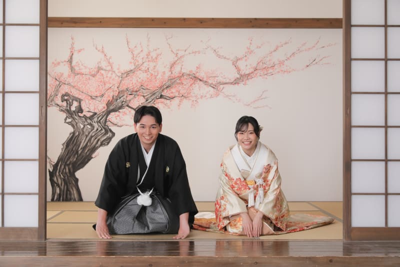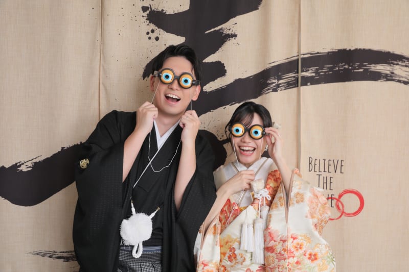 楽しくスタジオ撮影♪ 自然体なおふたりの和洋フォト