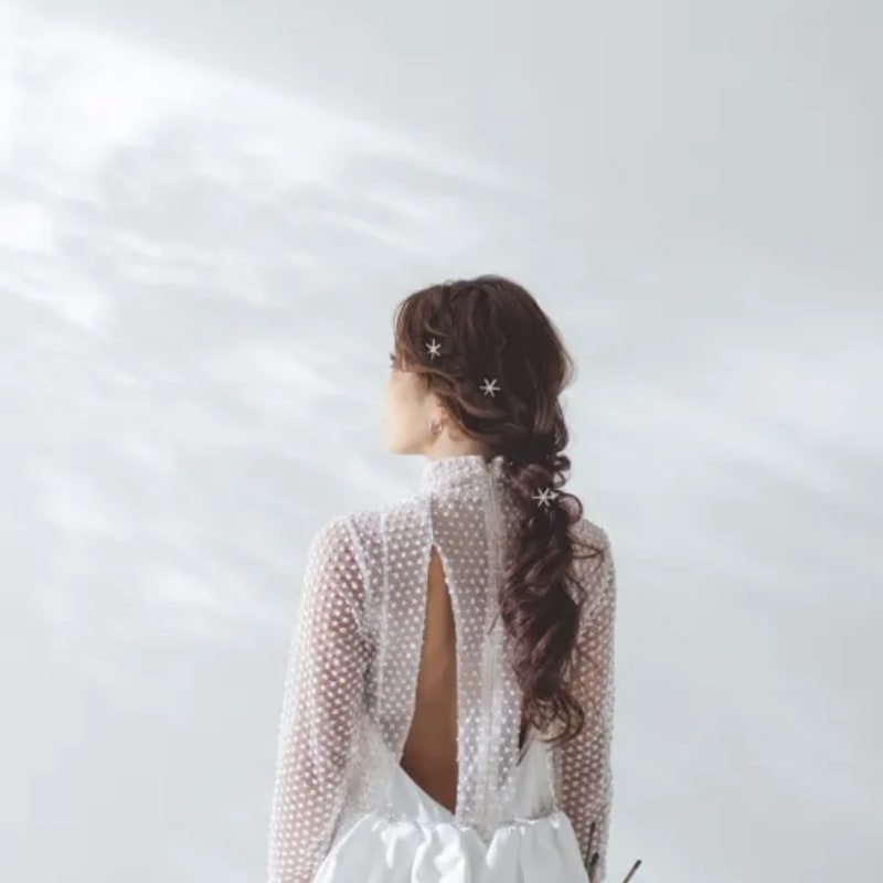 チャペルでの撮影やティアラをつけたい時にぴったりなヘアスタイル。