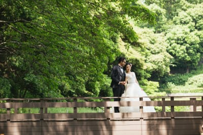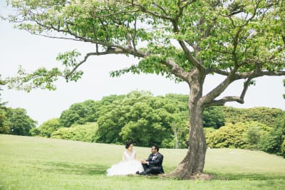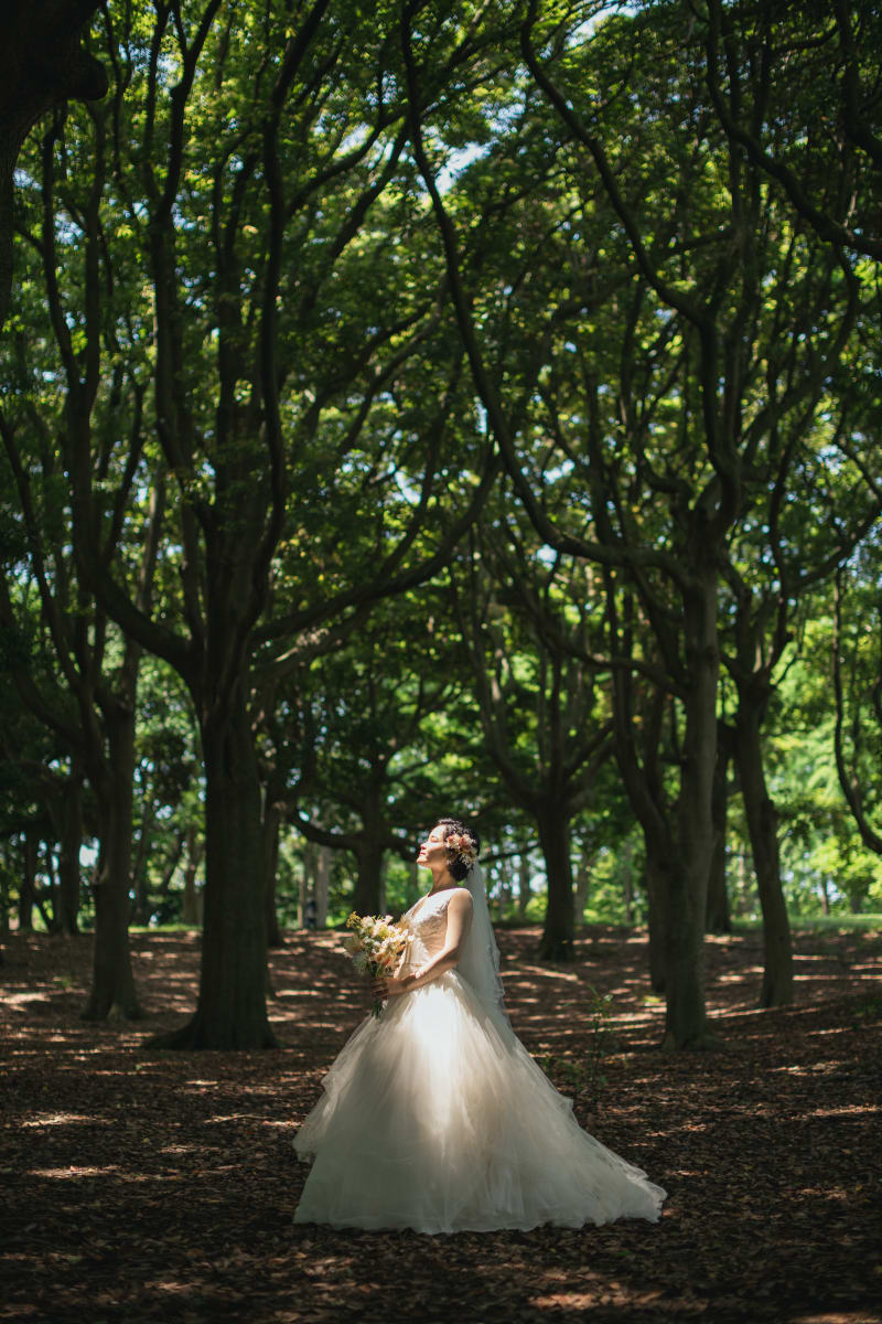 木々とお二人だけのぽつんとしたカットが可愛らしいですね!