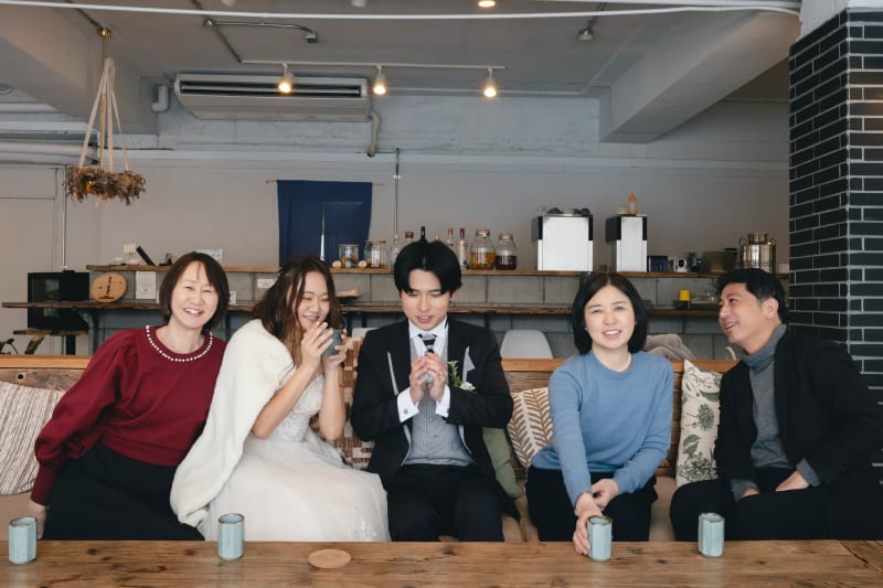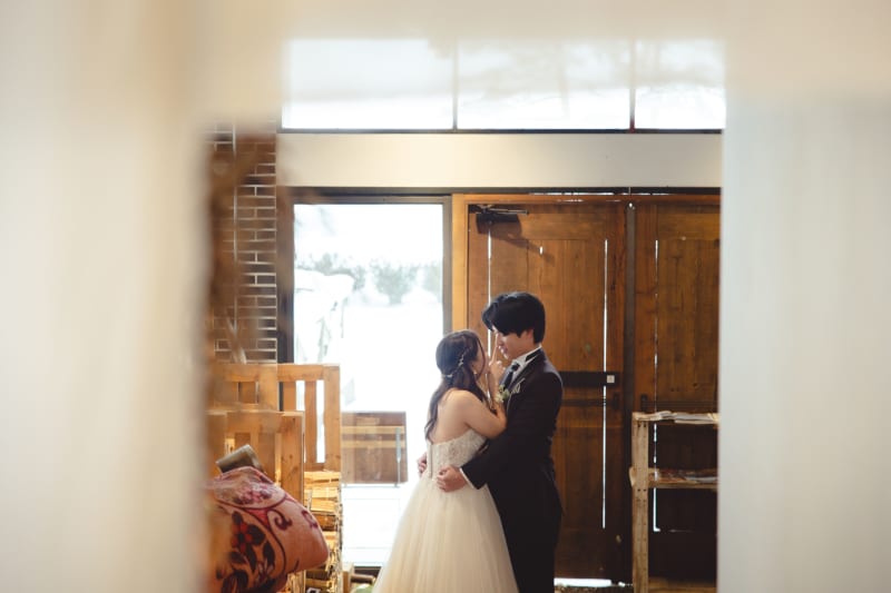 外の吹雪が嘘のように穏やかな店内。偶然が生んだこの場所での撮影は、お二人にとっても大切な思い出になったはずです。