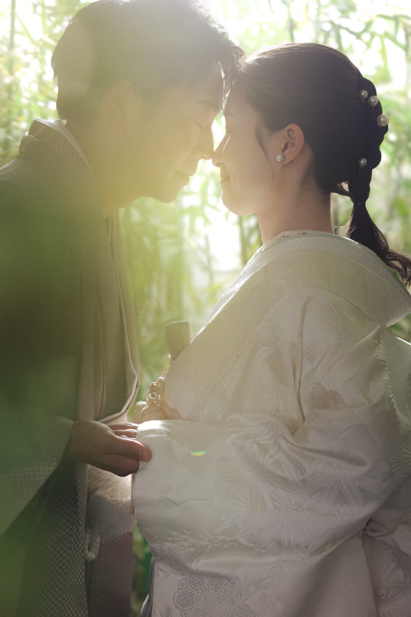 新婦様は白無垢で、新郎様はゴールドの紋服で色味を合わせてくれました^^