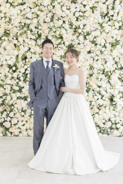 後半は一転して、光あふれる洋装スタイルへ。クラシカルなウエディングドレスとタキシードに加え、軽やかなカジュアルドレスでのカットも。リラックスした笑顔が弾けるお二人の幸せな空気感に、スタッフ一同も心癒される、ハッピーな撮影時間となりました。