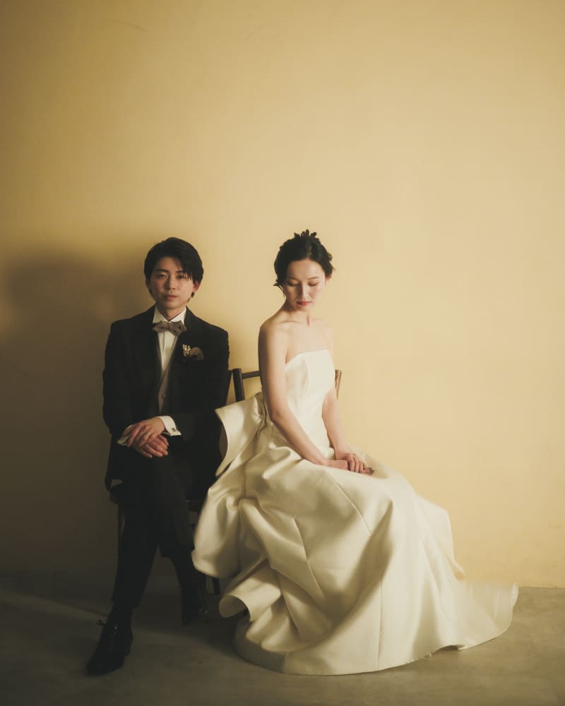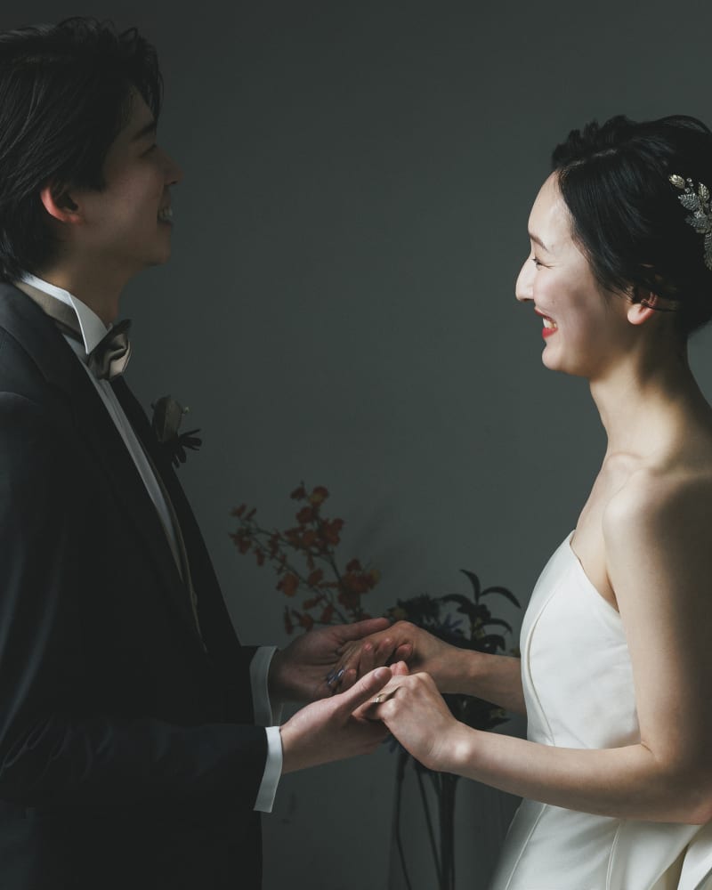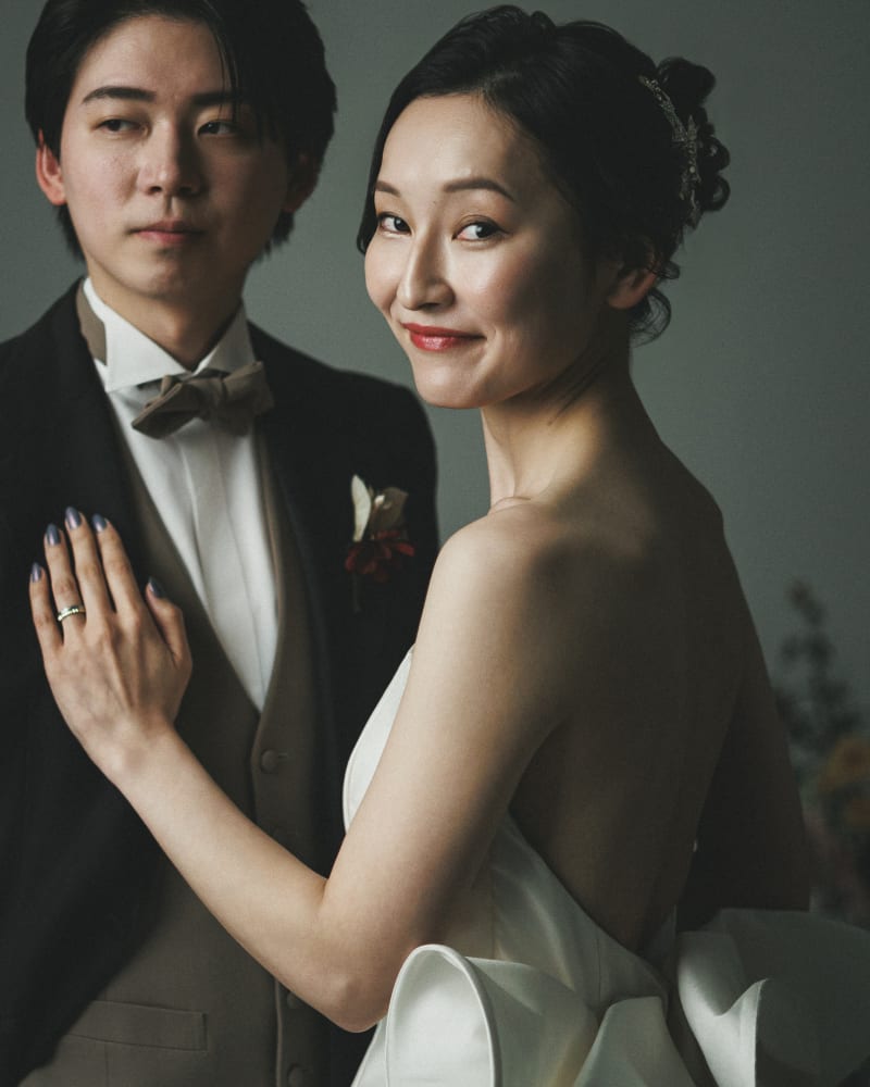 照れくさそうに見つめ合う瞬間も、静かに未来を見据える凛とした表情も。スタジオというプライベートな空間だからこそ引き出せる、お二人だけの心の距離感があります。時間が経って見返したとき、当時の温度感まで鮮明に思い出せるように。クラシックでありながら新しい、宝物のような写真たちが、お二人の新たな門出を祝福します。