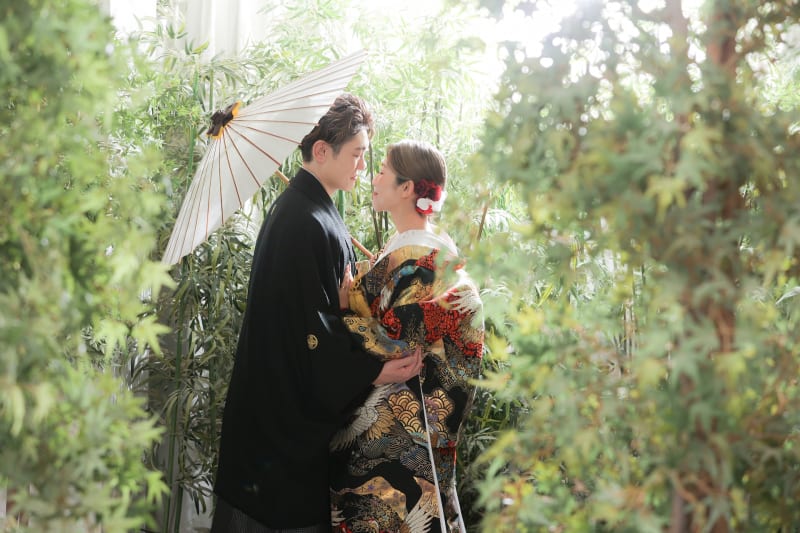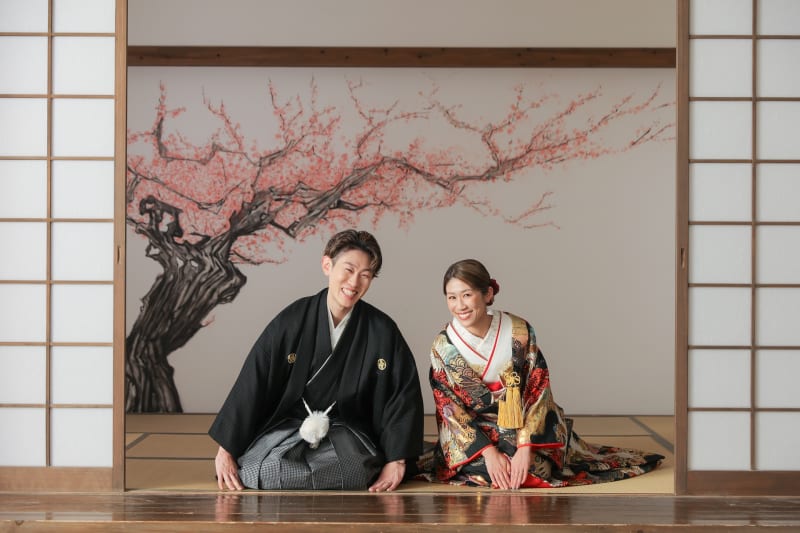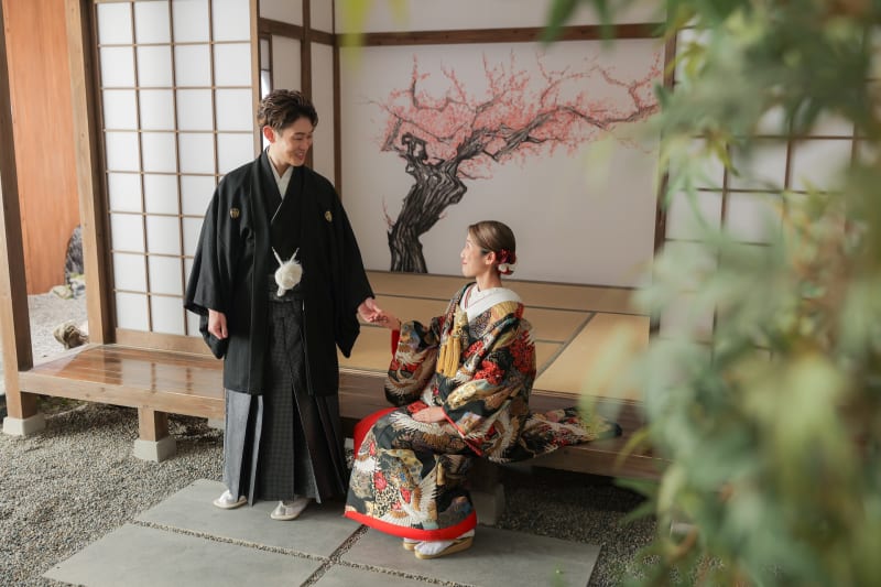 まずは和装の屋内庭園スタジオから!