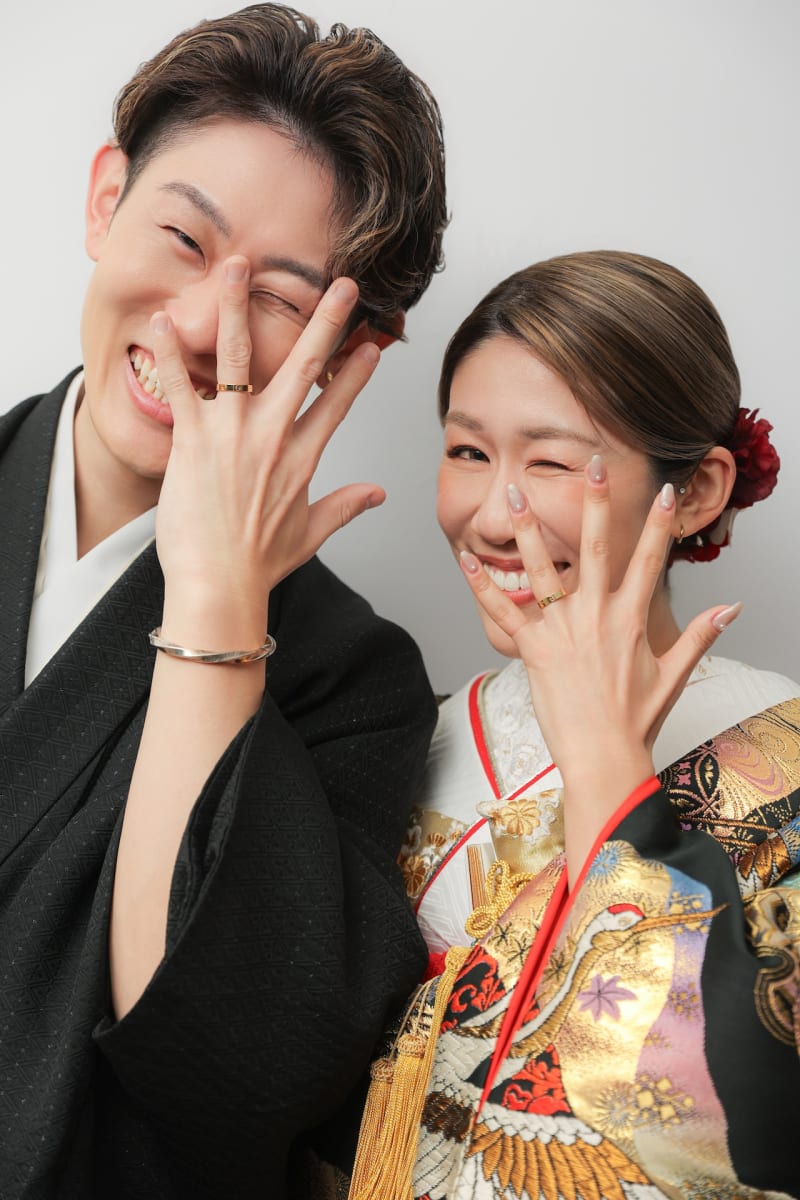 お二人の指輪にフォーカスしたカット。ウィンクもバッチリ決まってて可愛い仕上がりに♡