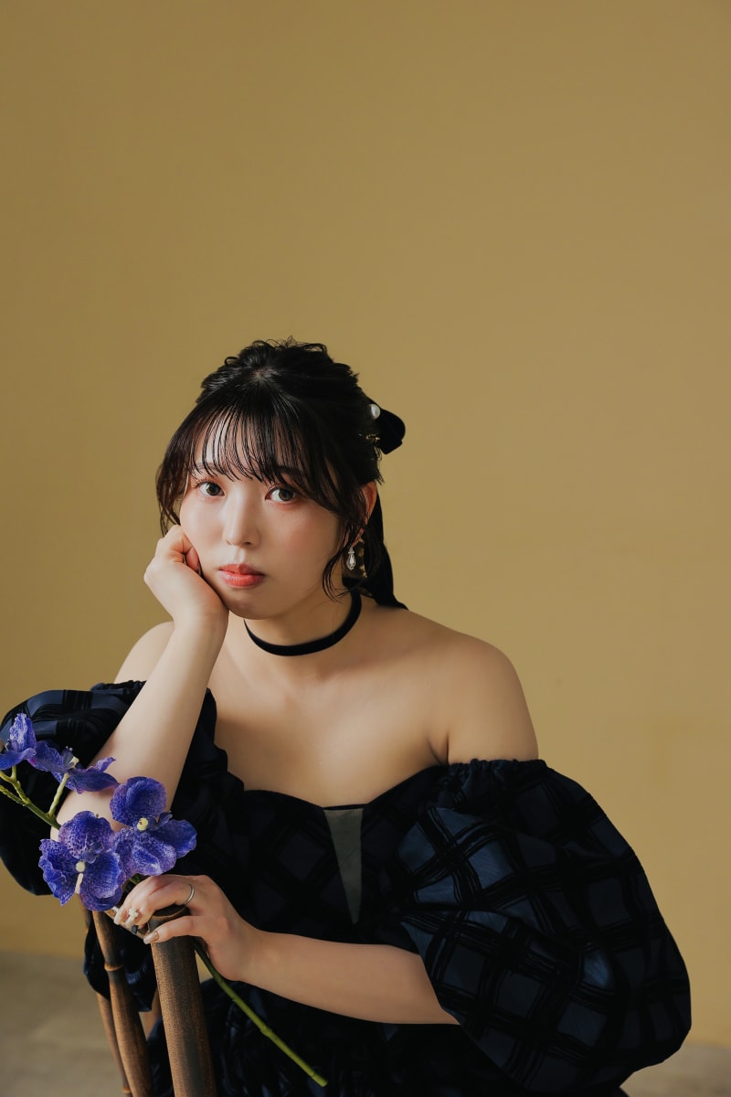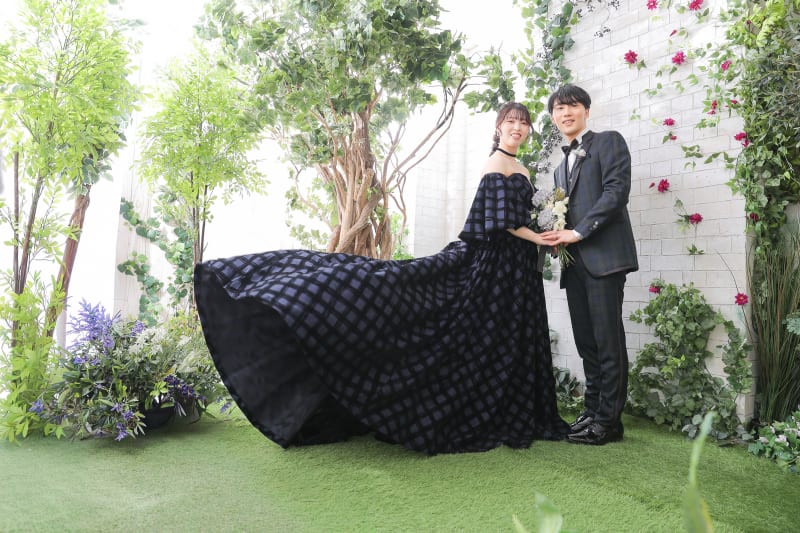 カラードレスは選んだ色で明るくもシックにもイメージがガラッと変わるのが楽しいですよね!紺色のダークトーンドレスは少し影のある写真で、ミステリアスに。