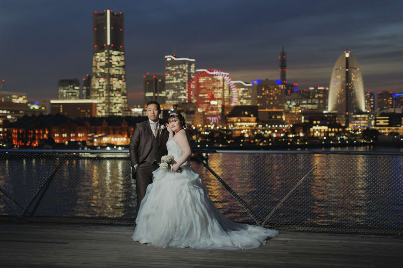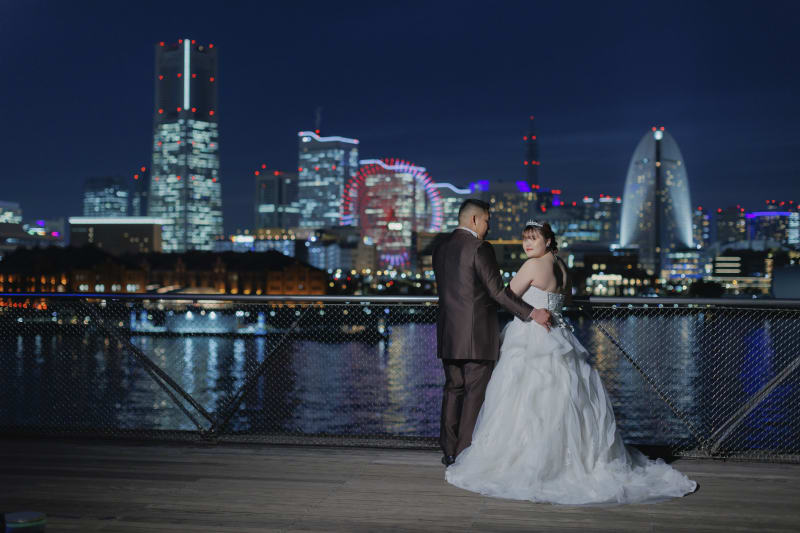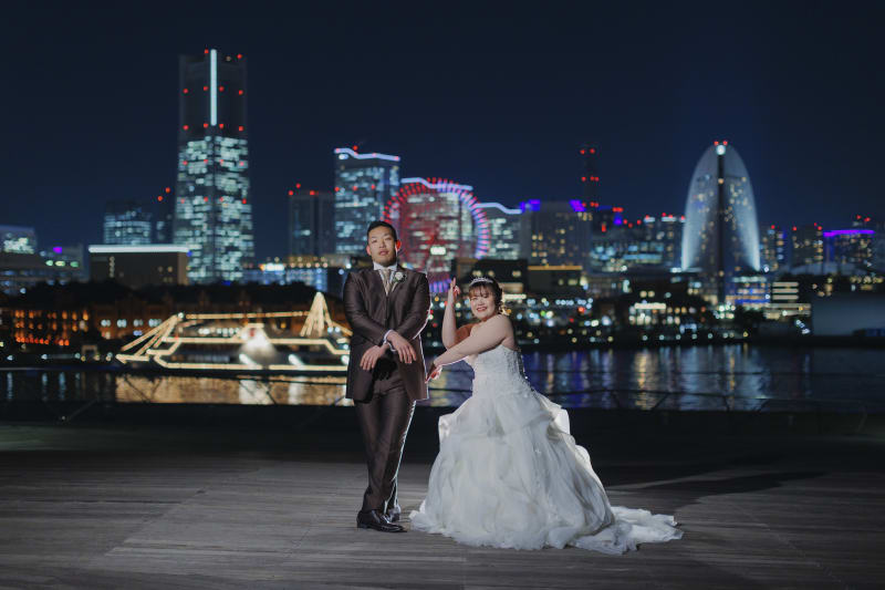 本日は和装で屋内庭園スタジオ、洋装で大さん橋ロケーションにて夜景撮影をしたお客様のお写真のご紹介です!!