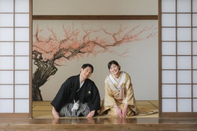 本格的な和室セットでの撮影。まるで古民家でくつろいでいるような、穏やかな空気感が流れます。
