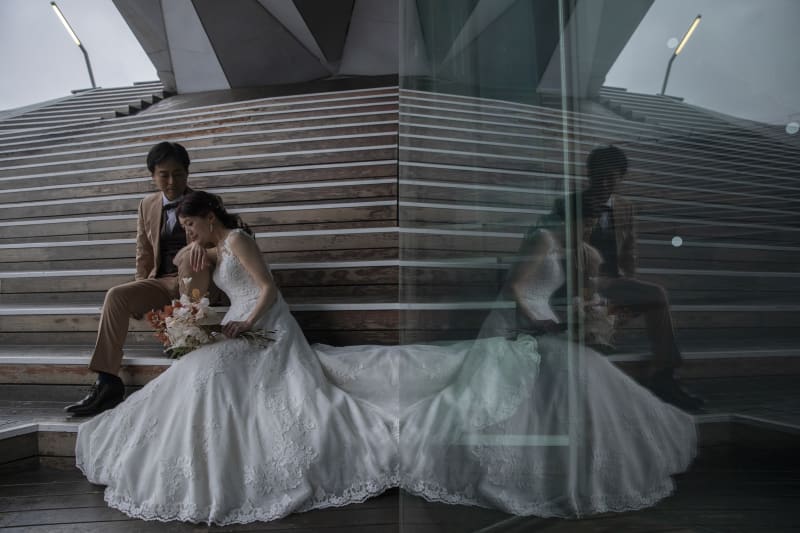 大人のお二人にはしっとりと落ち着いたポージングを。