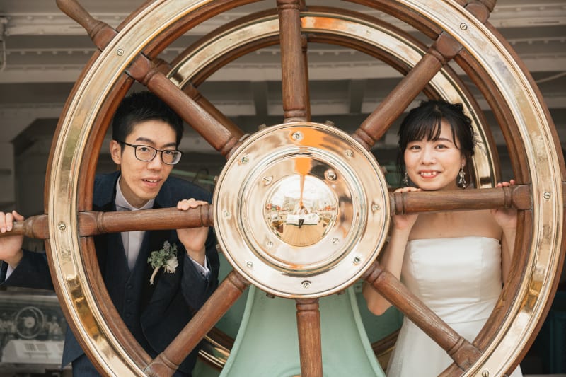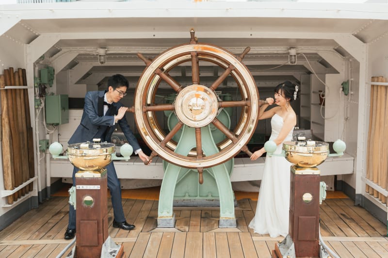号鐘を鳴らしたり舵輪を持ったりと様々なバリエーションで撮影が出来ます♪
