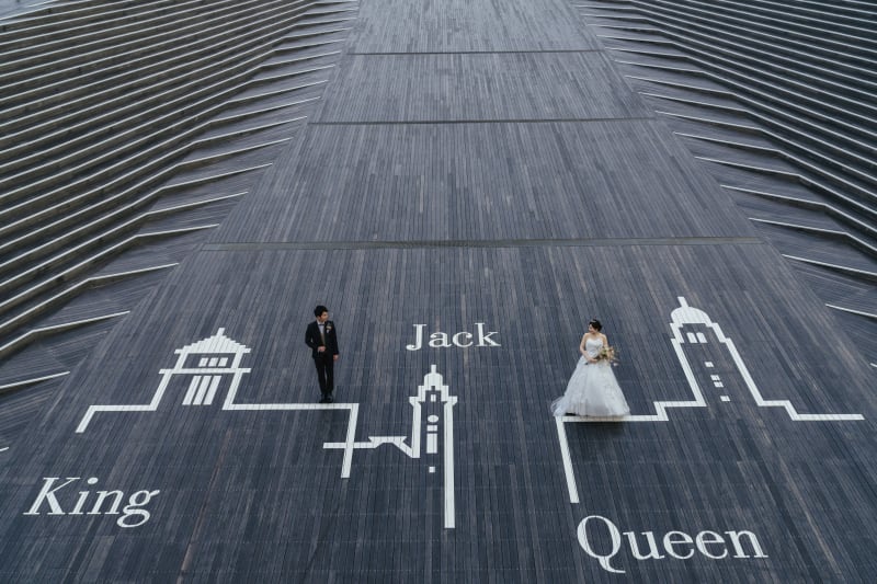 【横浜で記念日】汽笛が二人のスタートを祝う横浜のロケーションで美しい一枚を