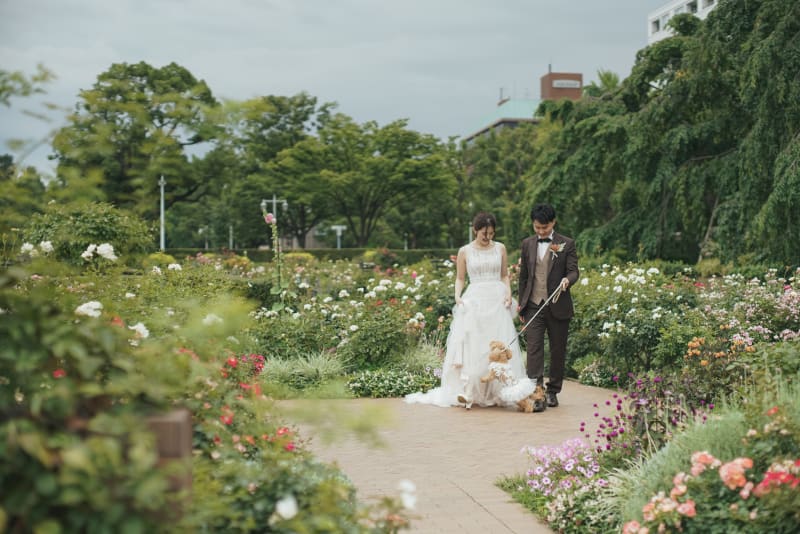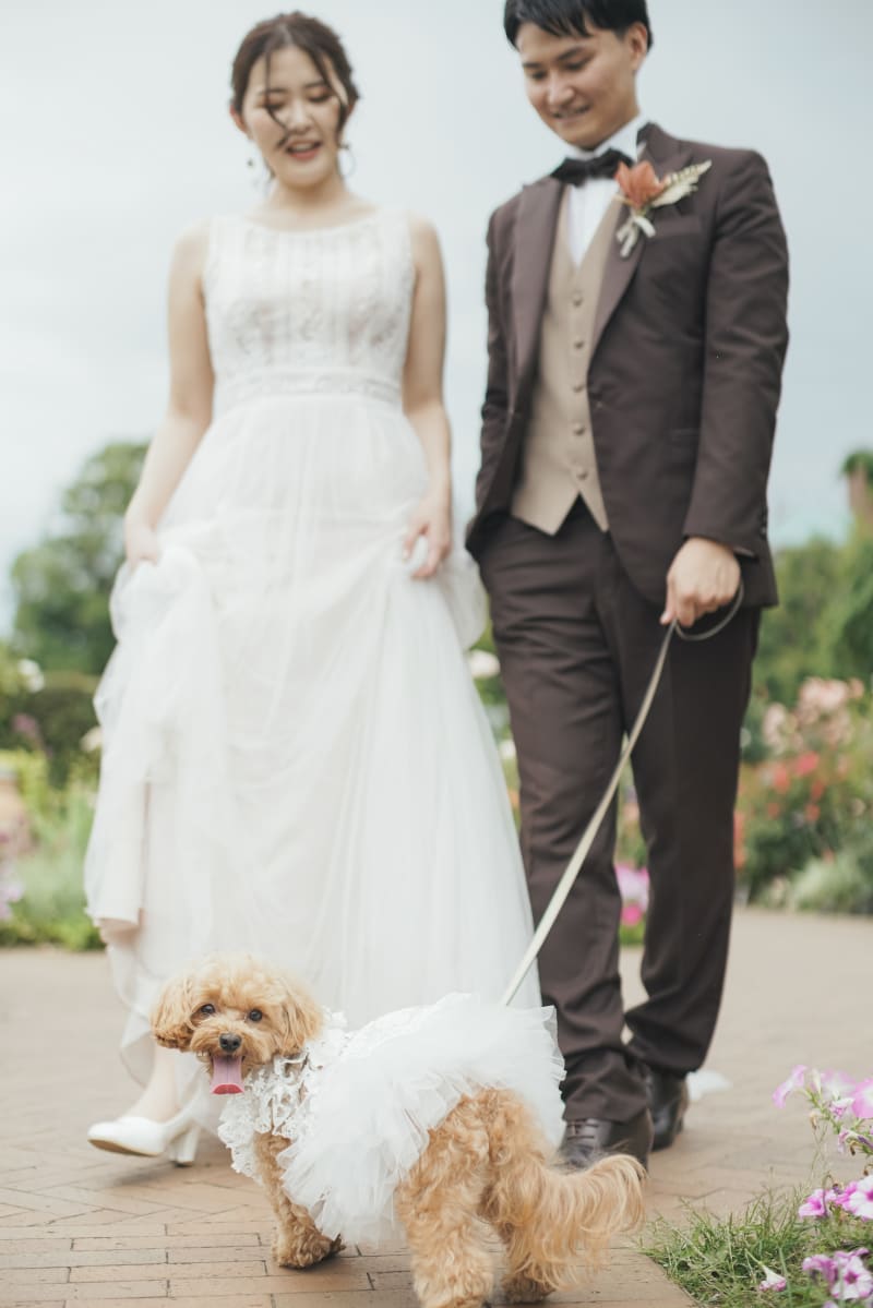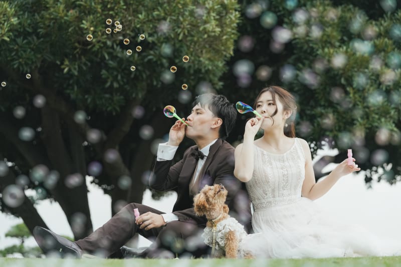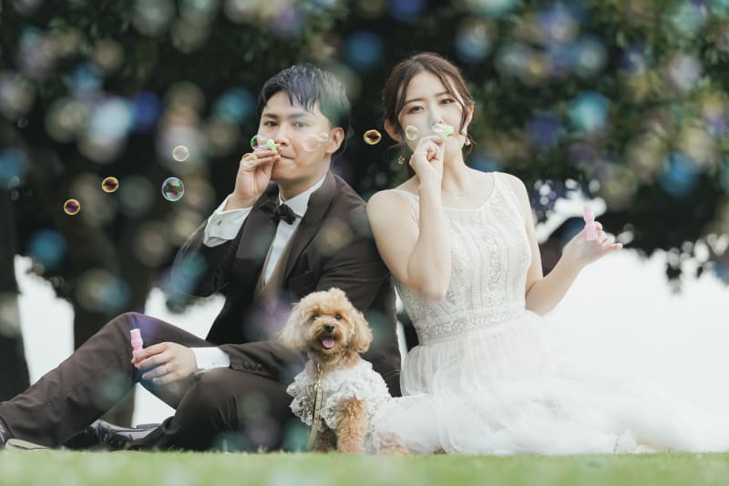 ワンちゃんと一緒の撮影や、シャボン玉を使ってお二人らしい素敵なお写真をの残すことができます!