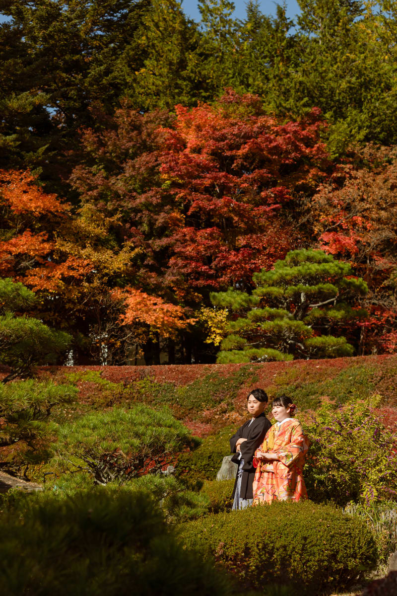 ロケ前撮りの中でも特にお客様に支持いただいているのが秋の紅葉の季節!