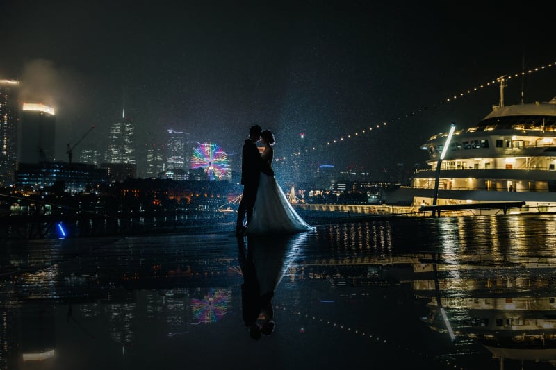 【横浜で記念日】汽笛が二人のスタートを祝う横浜のロケーションで美しい一枚を