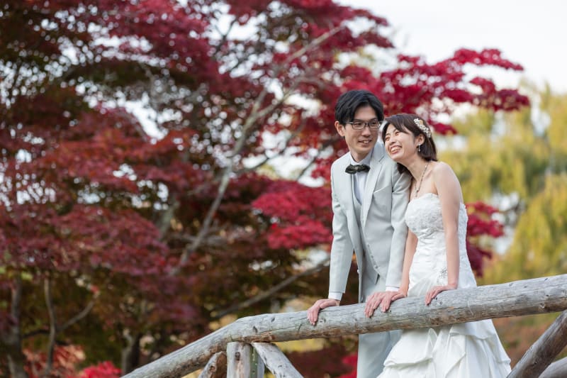 中島に繋がる橋から望む真っ赤なもみじ☆☆☆️