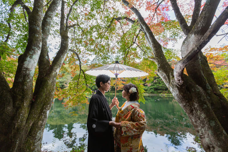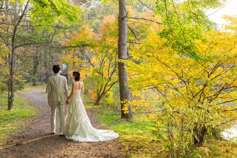 緑もちょっとありつつの紅葉はグラデーションで綺麗です!
