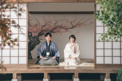 横浜みなとみらい店人気No.1。本格的な茶室スタジオで撮影する、和装の結婚写真