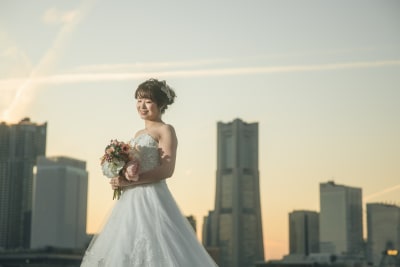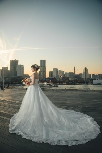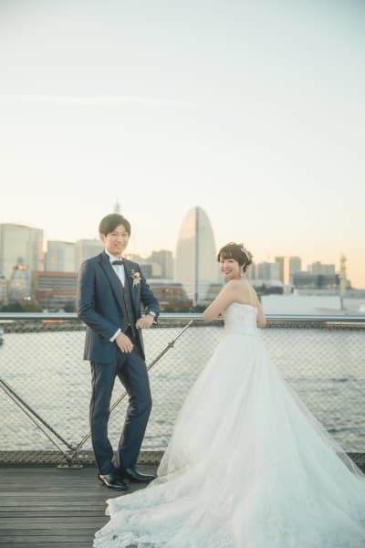 【横浜で記念日】汽笛が二人のスタートを祝う横浜のロケーションで美しい一枚を