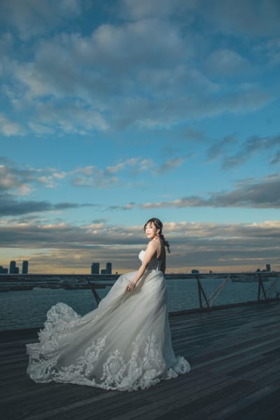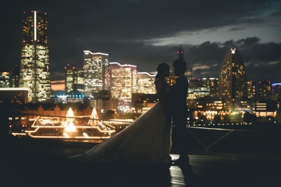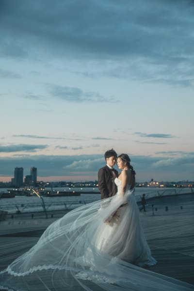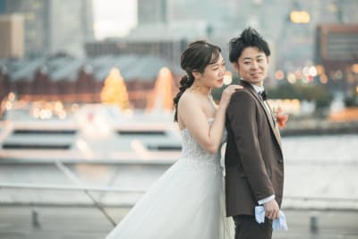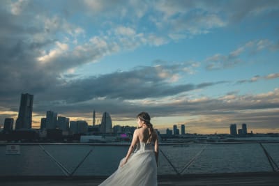 【横浜で記念日】汽笛が二人のスタートを祝う横浜のロケーションで美しい一枚を