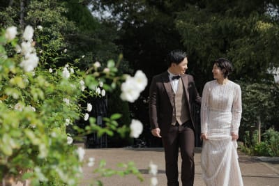 たくさんのバラが植えられているお庭、迫力ある外観、写真映えする室内の階段で撮影を行うことが可能です。